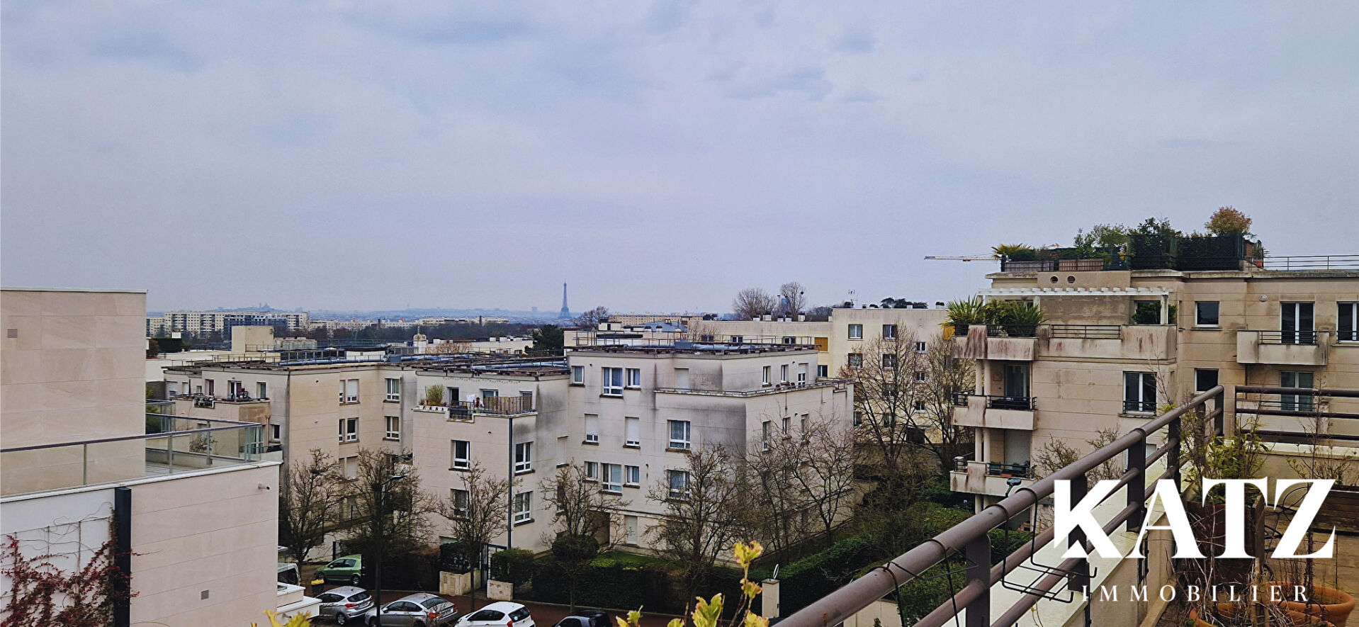 Katz Immobilier vous présente un très bel appartement de 3 ou 4 pièces au 4ème et dernier étage dans une résidence de 1991 de 129 m² carrez (pondéré à 150m2 avec les extérieurs), magnifique vue sur Paris, la Tour Eiffel.